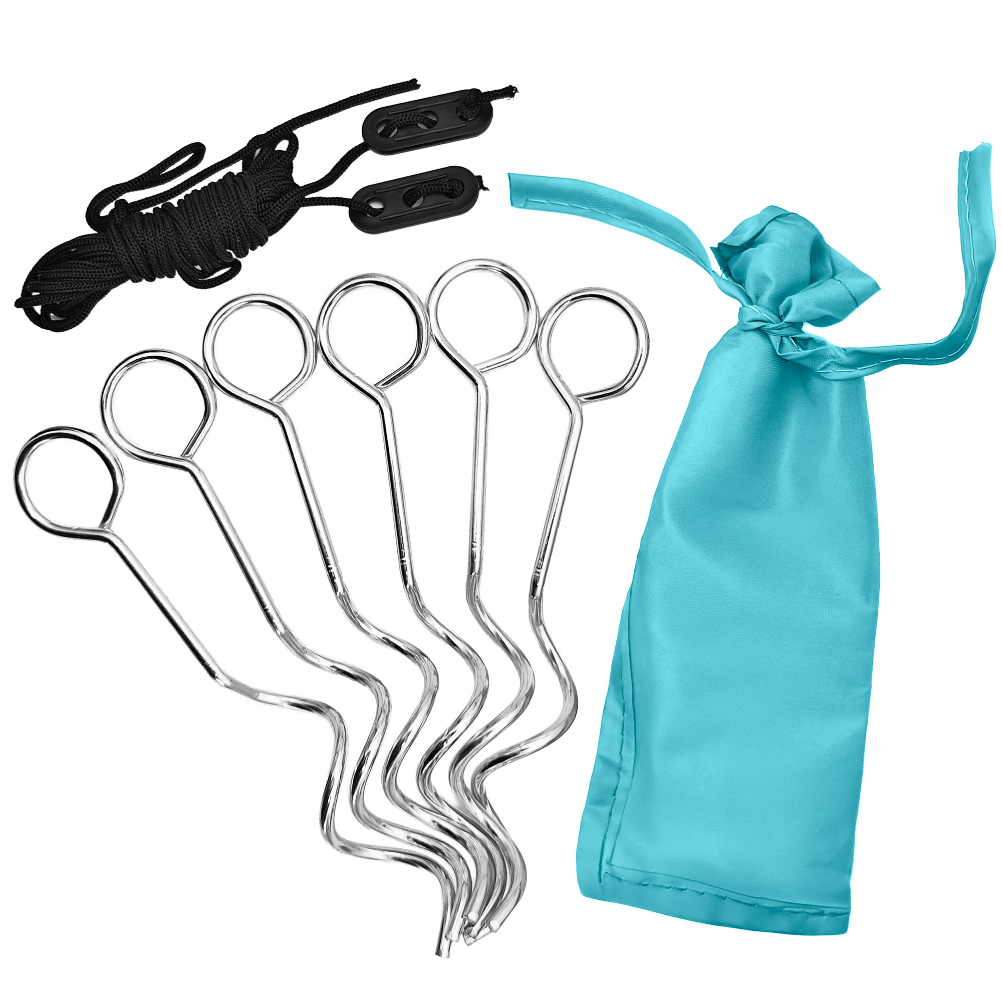 Zestaw ułatwi montaż namiotu, a specjalnie zaprojektowane śledzie utrzymają go przy ziemi nawet podczas mocnego wiatru. Wszystko znajduje się w specjalnym etui. Dodatkowo w zestawie znajduje się również pokrowiec wraz ze sznureczkiem, dzięki czemu złożony namiot bez problemu zabezpieczysz i wygodnie przeniesiesz.