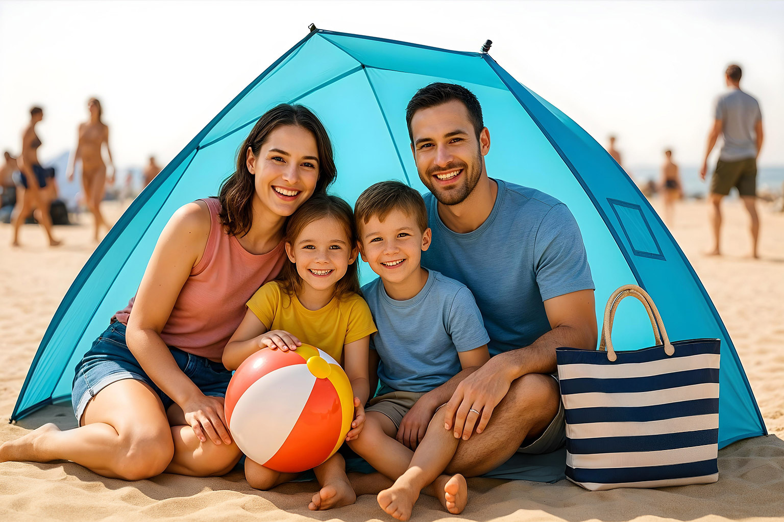 - Szybki i łatwy montaż: namiot plażowy można szybko i łatwo rozłożyć, co jest niezwykle wygodne podczas krótkich wypadów na plażę