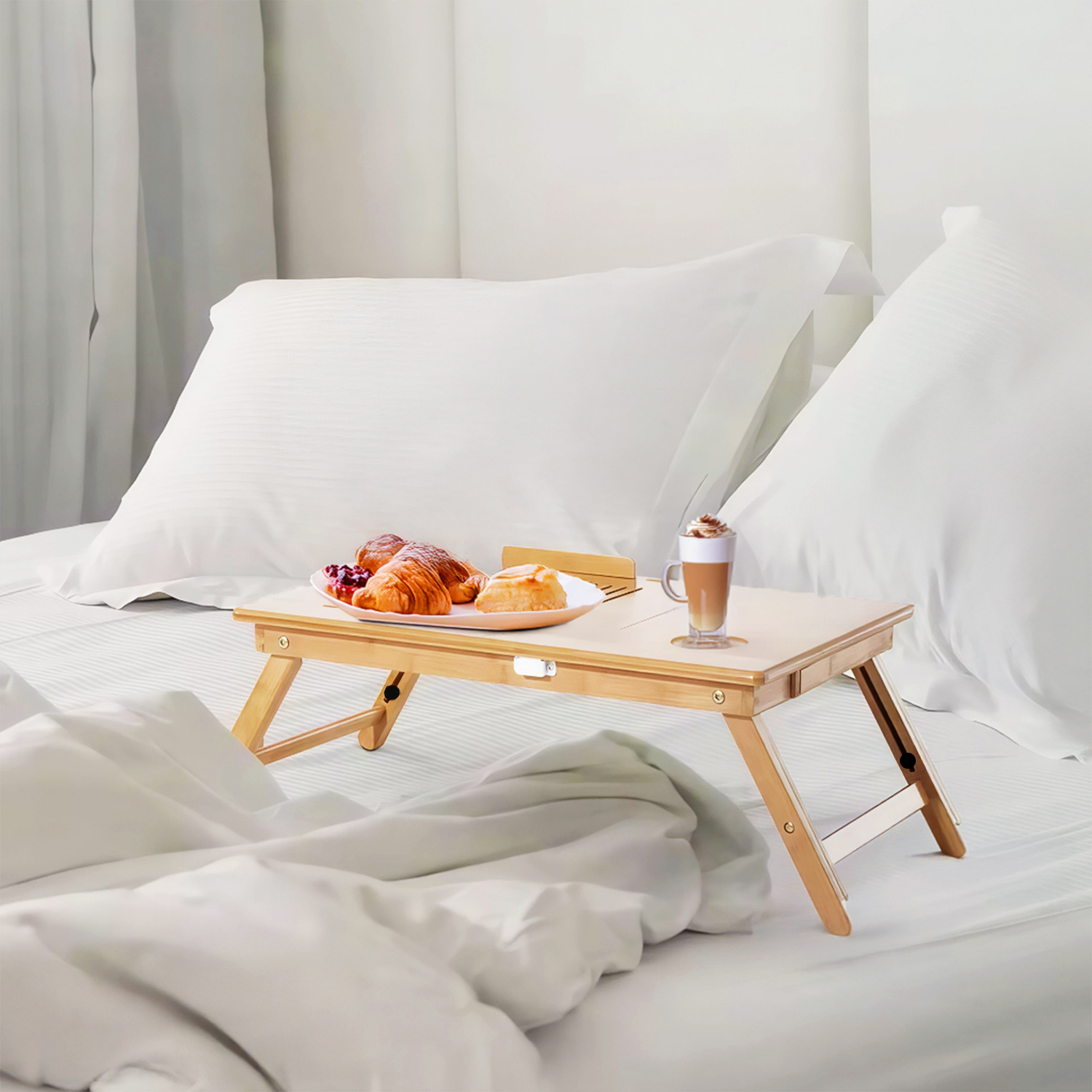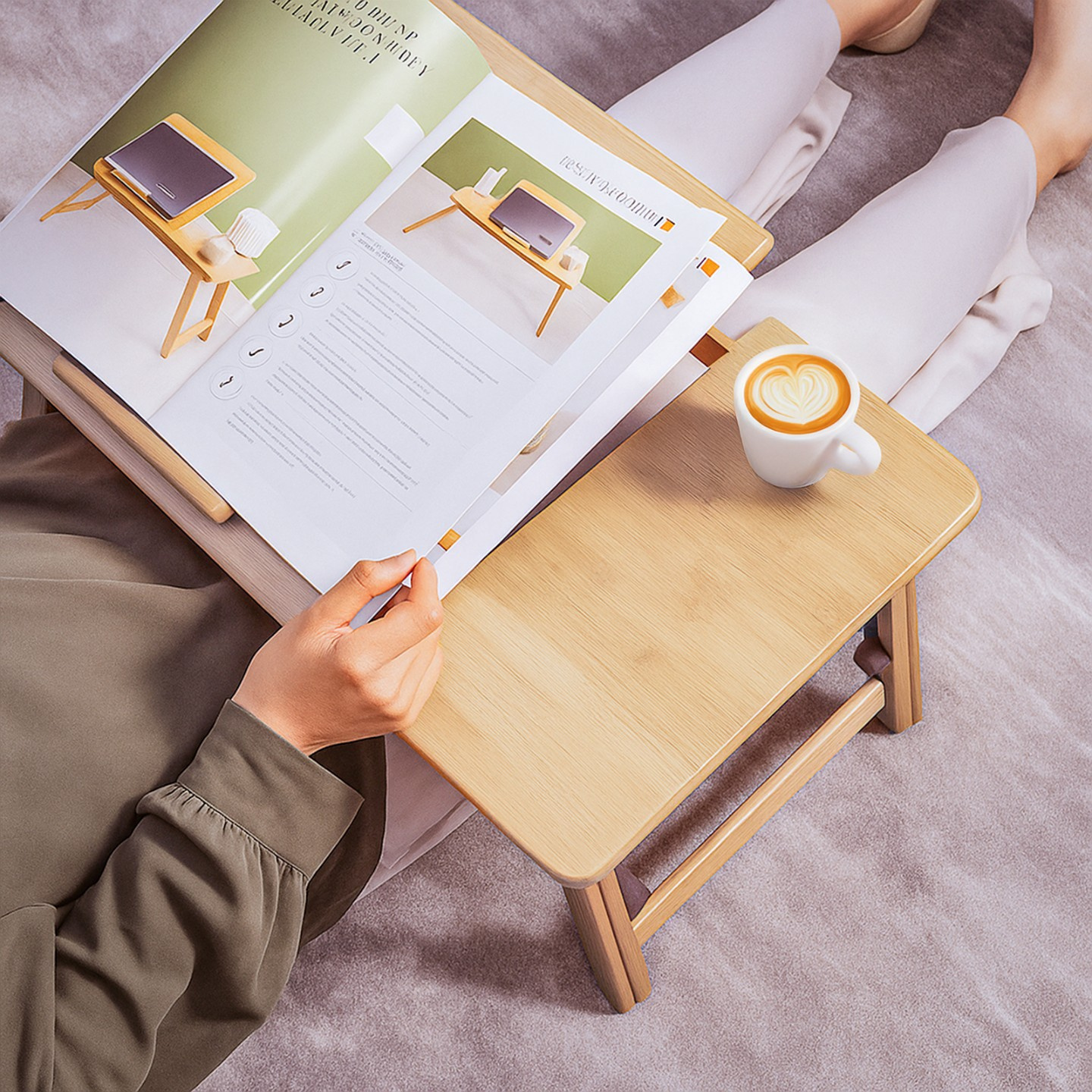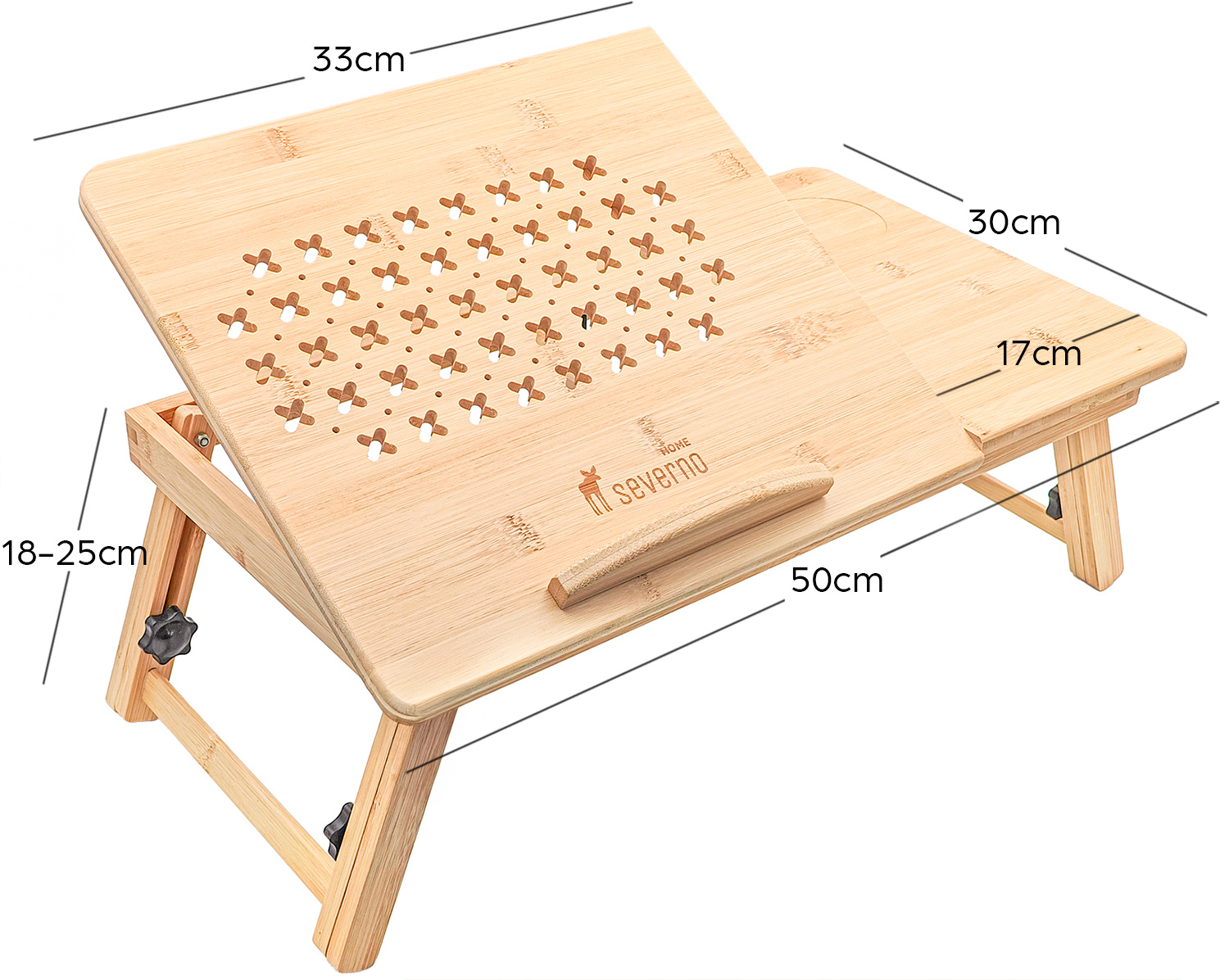 - Składany i mobilny – po skończonej pracy złóż stolik w kilka sekund i przechowuj go bez zajmowania cennej przestrzeni