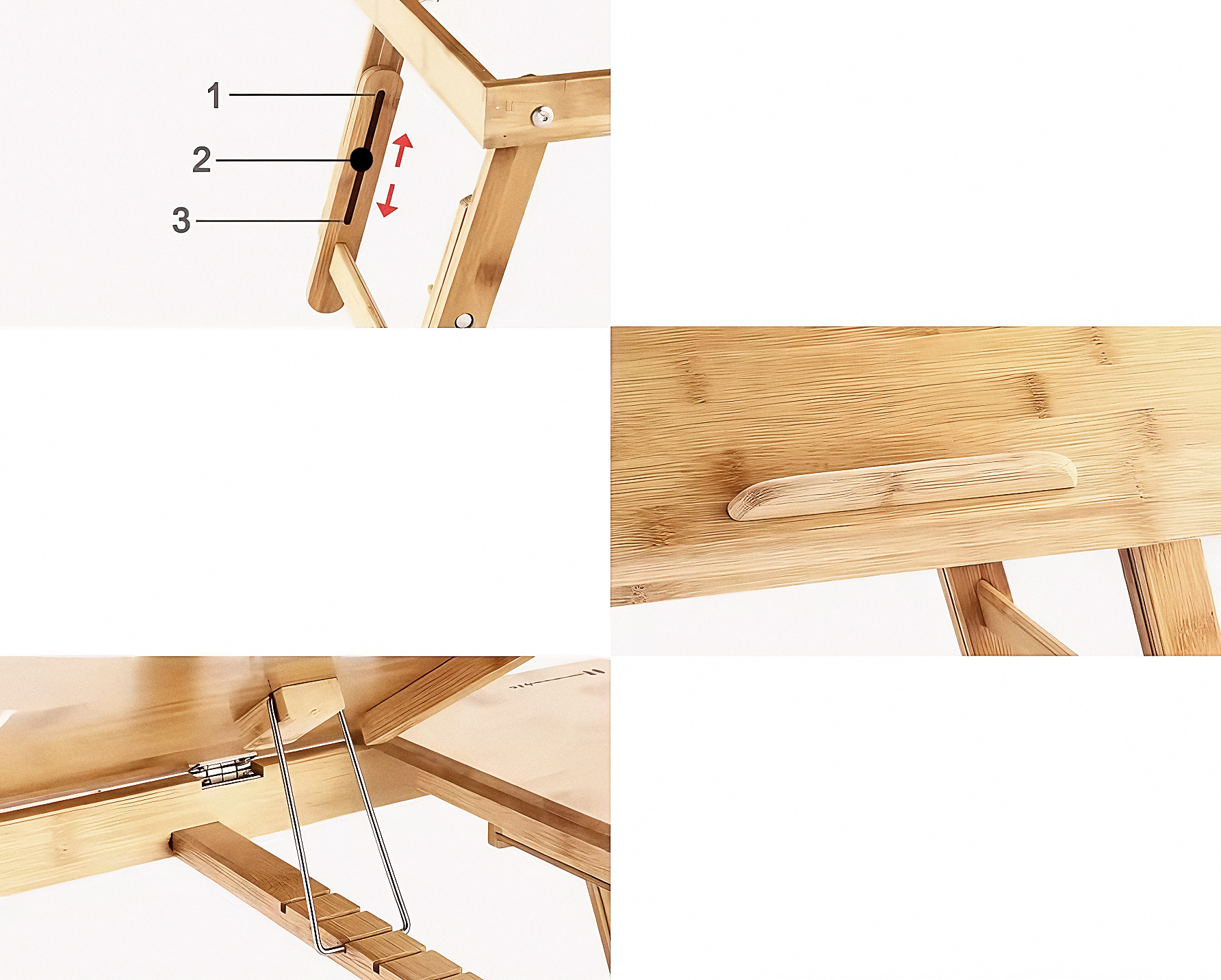 - Stabilna i bezpieczna konstrukcja – solidne blokady utrzymują blat i nogi w wybranej pozycji, zapewniając pewne podparcie sprzętu lub książek.