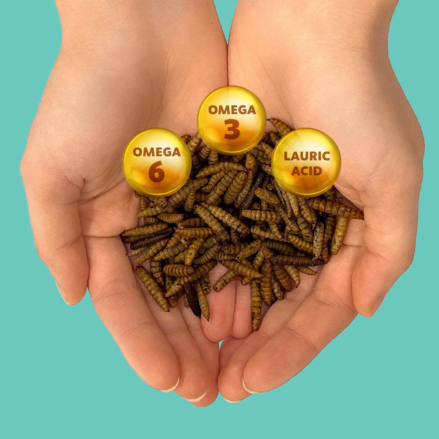 - W 100% naturalne: suszone larwy muszki czarnej żołnierskiej, bez konserwantów, barwników i sztucznych dodatków.